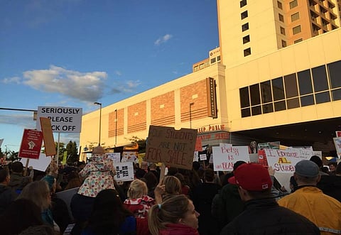 Last Friday, U.S. Secretary of Education Betsy DeVos spoke at a gala dinner in Bellevue for the Washington Policy Center, a free-market think tank based in Washington. As the fundraiser was underway, about 1,500 people protested in an action organized by the Equity in Education Coalition and partners.