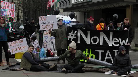 📸 Featured Image: Protesters in downtown Seattle in 2018 opposed to the building of a new youth jail. Activists are calling for an end to "auto decline," where some youth are automatically tried in adult courts. Photo by catusbones via Flickr (under a Creative Commons, CC BY-SA 2.0 license).