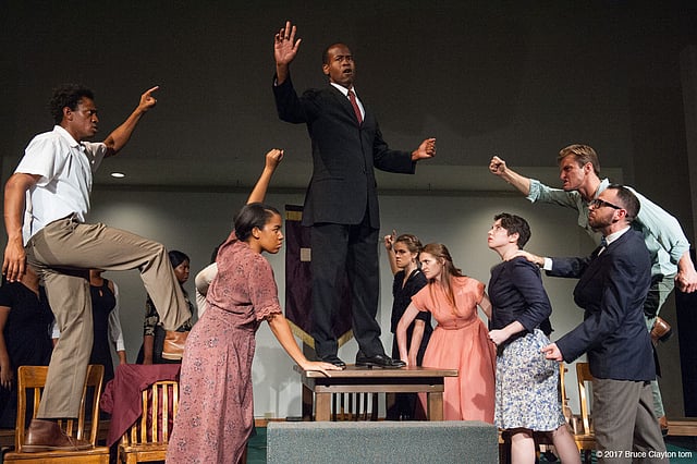 In Richard's heartbreak and rage, Lyle's pursuit of distinction in the absence of integrity and honor, Parnell's turmoil and betrayal of Meridian, Juanita's eagerness to love, Meridian's eye contact with the audience during a monologue of conviction, and Lorenzo's bold courtroom salute, the delivery by this young cast is rich and unencumbered.