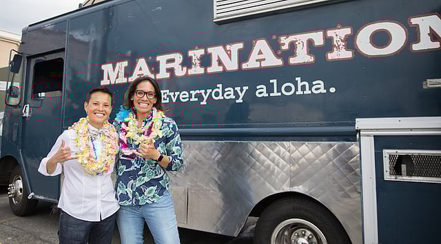 Featured Image: Co-owners Kamala Saxton and Roz Edison celebrate Marination's 10-year anniversary at an event to benefit Jubilee Women's Center. (Photo: Alex Garland)