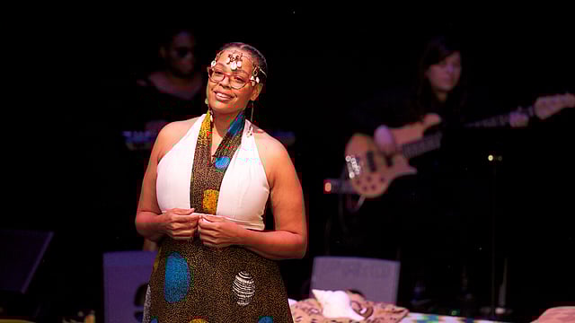 Franklin's bond with the two — live music and poetry — recently came to life at Langston Hughes Performing Arts Institute in her show Mama'z Muezz. The moving one-woman show centered on motherhood, and the original score matched the tone and intensity of Franklin's poetry..