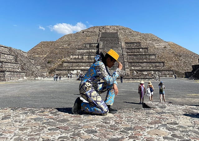 Featured Image: Zahyr wears their own textile print at San Juan Teotihuacn, Mexico. (Photo courtesy of Zahyr Lauren)