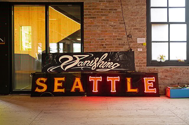 A year ago, Brothers took over an entire floor of the RailSpur building in Pioneer Square with a Vanishing Seattle exhibition featuring signs from iconic Seattle businesses that no longer exist. The show doubled as both an ode to the Emerald City's legacy of place and to the community of people who saved and remembered bits and pieces of bars, restaurants, venues, and other gathering spaces over the decades.