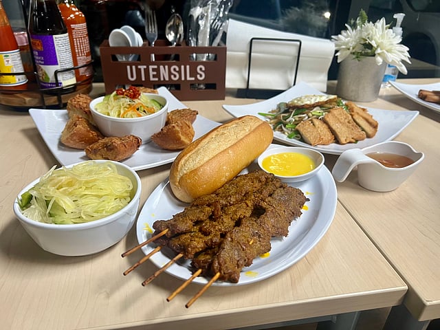 I've always heard my relatives from Cambodia talk about this sandwich but never had one in a restaurant setting. I was excited. The beef skewers were served with a baguette, a slightly sweetened butter and egg yolk spread, and pickles, all on the side — a build-your-own sandwich that allowed me to create my "perfect" ratio. The beef was seasoned well, with hints of lemongrass mingled with the buttery, creamy spread and refreshing pickles.