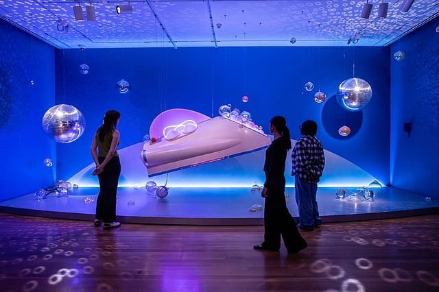 And in "Venus is Missing," Waters invites the audience to do the same imaginative work of envisioning themselves in a pink spaceship or diving into a portal or struggling with a monster-sized ball-barrette as a way to think about their own universe, their own future. You can go and check it out for yourself anytime from now through next January.