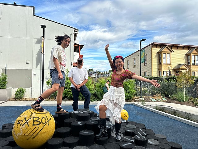 The band hi hi hi is composed of three former coworkers at The Wing Luke Museum, endearingly referred to as "The Wing." Their multi-genre music reflects their Southeast Asian American heritage and is a conduit for bridging intergenerational chasms and authentic expression of lived experience. They're also part of a movement striving to cultivate more music venues in Little Saigon.