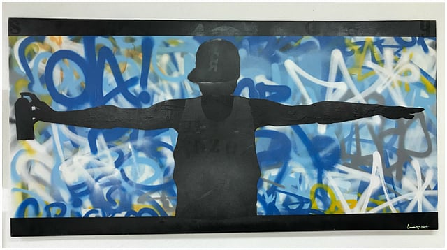 The event featured not only stellar visual art in the form of paintings and murals but also in sculpture, like the twisting, 3D sectional electric guitar piece by Katie Kurkjy, and unique, street-art-related installations like the huge pile of empty spray-paint cans and an oversized aerosol can tip that almost looks like it could be a modern living room chair.
