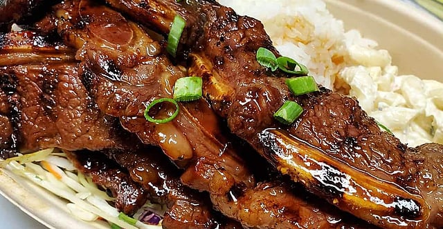 Featured image: Grilled short ribs over a bed of jasmine rice and Asian slaw from Buddha Bruddah. (photo: Buddha Bruddah)
