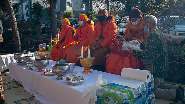 📸 Featured Image: Buddhist Monks from Watt Dhammackakaram sit as residents of Mt. Baker Village chant in ceremony. Watt Dhammackakaram, located in Beacon Hill, is the oldest Khmer Buddhist Temple in Washington state. (Photo: Lucky Chanthalangsy)
