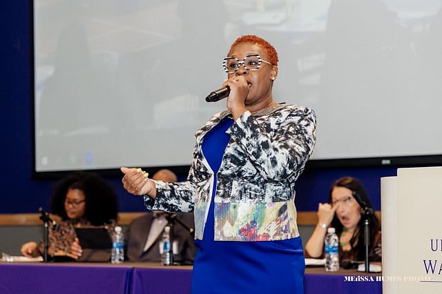Featured Image: Jenefeness Franke, a founder of Black-Owned Business Excellence and professional development consultant, speaks about management, operations, brand, and marketing at a panel in The Fourth Annual Black-Owned Business Excellence Symposium. (Photo: Merissa Humes)