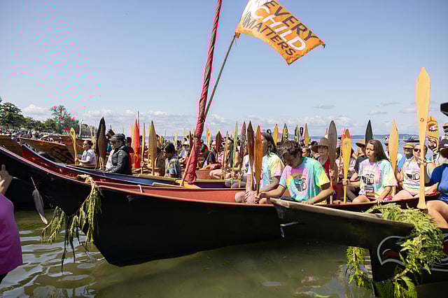 Featured Image: On July 30, 2023, as many as 120 Indigenous, First Nation, and Alaska Native canoe families made the journey from their homelands across the ancestral highways of the sea, just as their ancestors had since time immemorial, to gather at Alki Beach. (Photo: Alex Garland)
