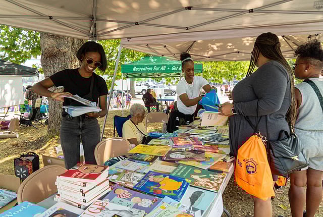 📸 Featured Image: Volunteers hand out children's books during this year's Back2School Bash. (Photo: Susan Fried)