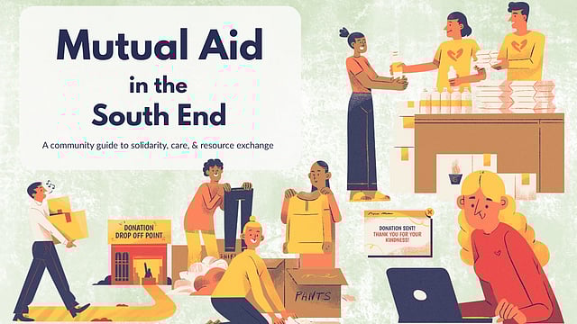 Below is a list of mutual aid groups in the South End and beyond, with information on how to contact them and the types of support they currently need. If you're interested in starting your own mutual aid group, take a look at this Mutual Aid 101 Toolkit. (The toolkit was created during the COVID-19 pandemic, but much of the information still applies.)
