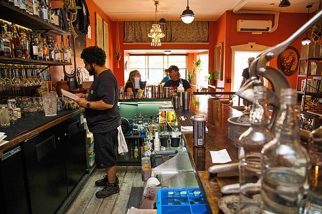 Really well, it turns out. While I didn't see Jude's during a rush, I did see Rice and his fellow FOH worker Avery Lambert seamlessly sharing the duties of mixing drinks, running food, and attending to customers. Rice stayed behind the bar a little more, while Lambert leaned toward table service, but no one needed to tell anyone else what to do.