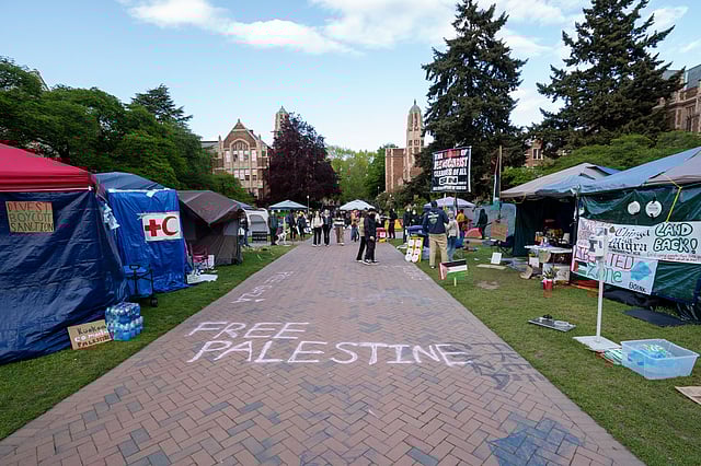 The encampment at UW came amid a wave of protests at U.S. universities that multiplied in the weeks following the Gaza solidarity encampment established by students at Columbia University on April 17. The protests have stimulated varying responses from university administrations, as some have cracked down with law enforcement while others have offered to negotiate with students on their demands.