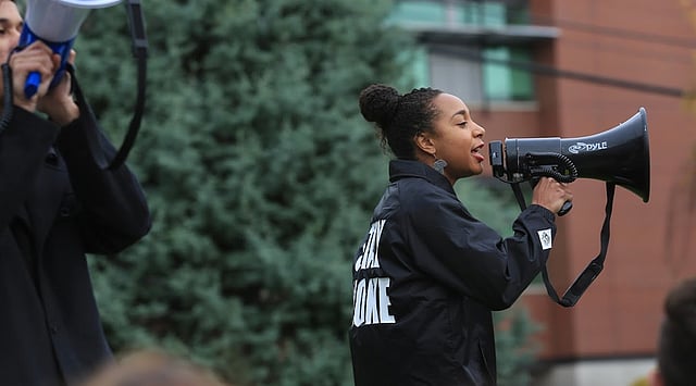 MK: There's a photograph of you from November of 2015 with a megaphone. You are wearing a jacket with the words, "Stay Woke". Tell me about that photograph.