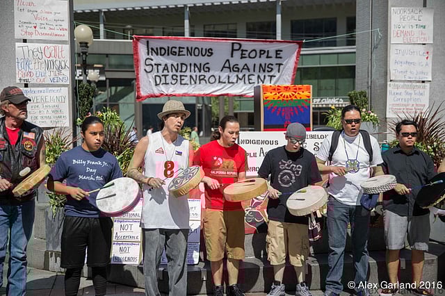 I asked Matt Remle, writer and editor at LastRealIndians.com about disenrollment. "In the 1930's after the US government forced US citizenship on tribes there was a bill passed called the Indian Reorganization Act, which forced tribes to develop tribal governments and dissolve traditional forms of government. The purpose was mainly to create puppet tribal [governments] that would serve to basically rubber stamp allowing corporations to take resources from reservations despite broader tribal opposition. This lead to some pretty horrific internal battles over the decades where tribal [governments] acting on behalf of US corporate interest would stifle opposition with the support of the Feds. The stand off at Wounded Knee II in the 70's is probably the most high-profile example. I see disenrollment as a new chapter in silencing/stifling dissent."