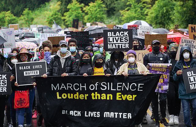 Organized by Black Lives Matter Seattle-King County, the march composed of an estimated 60,000 protestors, remained silent in order to "honor those lost to police brutality and institutionalized racism, and as a safety precaution against coronavirus," according to the organization.