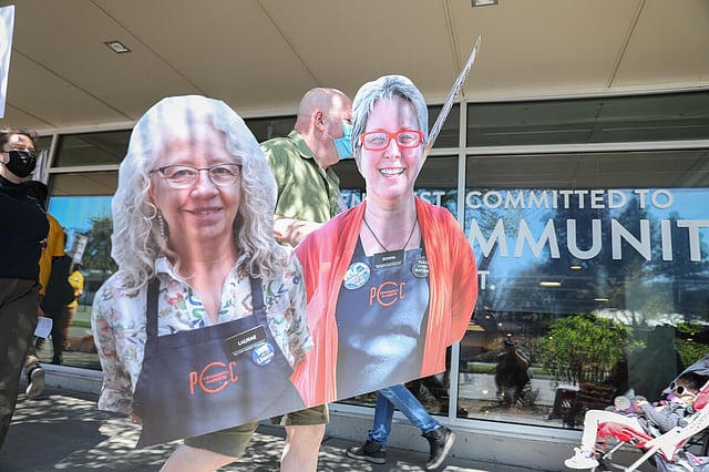 Picketers are aiming to raise PCC members' awareness that three seats on the Board of Trustees are currently up for grabs. Donna Rasmussen and Laurae McIntyre, two long-time front-line PCC workers hoping to improve negotiations for other essential workers, are running for two of the seats.