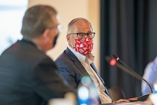 "It's been a long journey, but it is not over. It isn't safe to end this today," Inslee said at the online event.