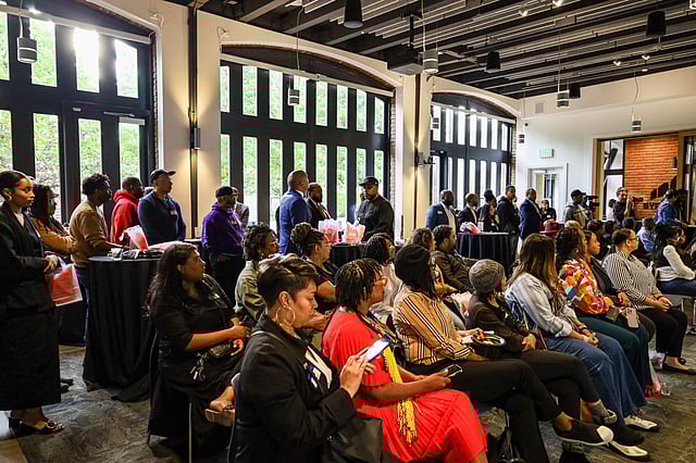 Following the panel, the event's sponsors were invited up to the podium to address attendees before Jackson Gandy returned to dismiss everyone. Councilmember Joy Hollingsworth went up to address her constituents and talked about the importance of investing in Black businesses and community.