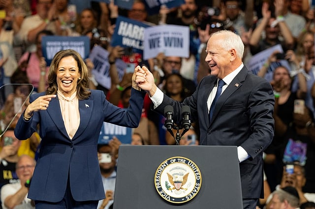 "From her first day as a prosecutor, as a district attorney, Attorney General of the great state of California, a United States Senator, and Vice President of the United States, Vice President Harris has fought on the side of the American people. She took on the predators, she took on the fraudsters, she took down the transnational gangs, she stood up against powerful corporate interests, and she never hesitated to reach across the aisle if it meant improving people's lives," Walz said onstage. "And I want all of you to hold this, and don't ever underestimate the power of this: She does it all with a sense of joy."