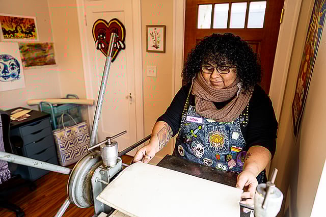 My mother is Maria Cruz, my grandmother is Eloisa Saavedra, and my great-grandmother is Isidora Saavedra. They are matriarchs of the Otomi people, an Indigenous group in Michoacn/Guanajuato, Mexico. I was the first member of my family to be born in the U.S., and I was raised in Anaheim, California. I currently live on occupied Duwamish Territory (Seattle, Washington). I am a queer Indigneous printmaker, a doctoral student, and the dean for Arts, Humanities, and Social Sciences at South Seattle College. I am also currently a Nia Tero Pacific Northwest Art Fellow.