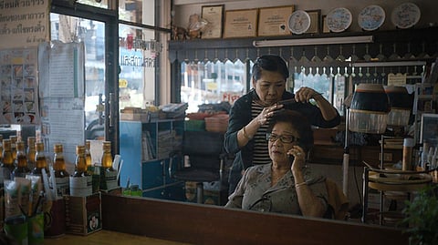 Telling Pinyon's story was just the beginning of Ensminger's cinematic exploration; he also wanted to capture Chiang Mai as it existed during his grandmother's youth in the 1940s. Fortunately, there are parts of the city that are perfectly preserved as if in "a time capsule, just like my grandmother" whose daily routines haven't changed in decades, Ensminger said. And Yai Nin's music score, composed by Bangkok-born Satta Rojanagatanyoo, transports the viewer back through time with music reminiscent of the Thai pop stars of that era.