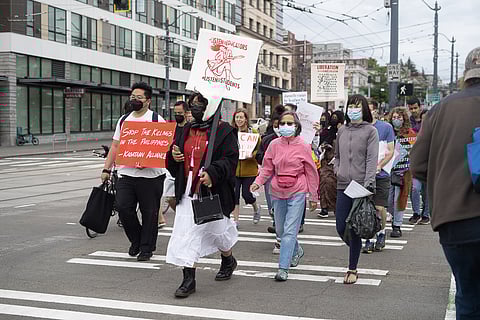 More of a "jumping-off point" reminding us of a need for action than a comparison, Jackson points to themes that are both "massive and consistent." In 1919, the United States was coming out of a terrible pandemic (the Spanish flu) and blowback about masking had led to unnecessarily high death tolls during the third wave. There was a rash of horrific race riots called "The Red Summer" across the country in over three dozen cities, terrorizing communities and galvanizing resistance. Prohibition also began that year, and World War I had just come to an end. Women gained the right to vote after decades of struggle. Post-war labor tensions led to one-fifth of the nation's workforce participating in strikes, and locally there was a general strike in Seattle that lasted five days. In the Chinatown-International District (CID), where the Teach the Truth rally was held June 12, 2022, the 2nd Avenue Extension was being built, displacing Chinatown from Pioneer Square to the CID's current location.