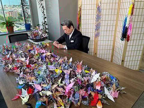 It's not often a consul general of Japan is also a social media phenomenon, but Consul General of Japan in Seattle Hisao Inagaki has received quite a bit of attention for his personal Instagram account featuring paper cranes. Since moving to Seattle in 2020, he has folded one origami paper crane, or "orizuru," every day to pray for everyone's health and peace during the pandemic, and he posts a video of the cranes every day on Instagram.