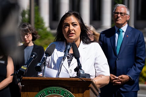 Featured Image: Sen. Manka Dhingra speaks at a press conference following the Supreme Court decision in Dobbs v. Jackson Women's Health Organization. Photo is attributed to Gov. Jay Inslee's Flickr (under a Creative Commons, CC BY-ND 2.0 license).